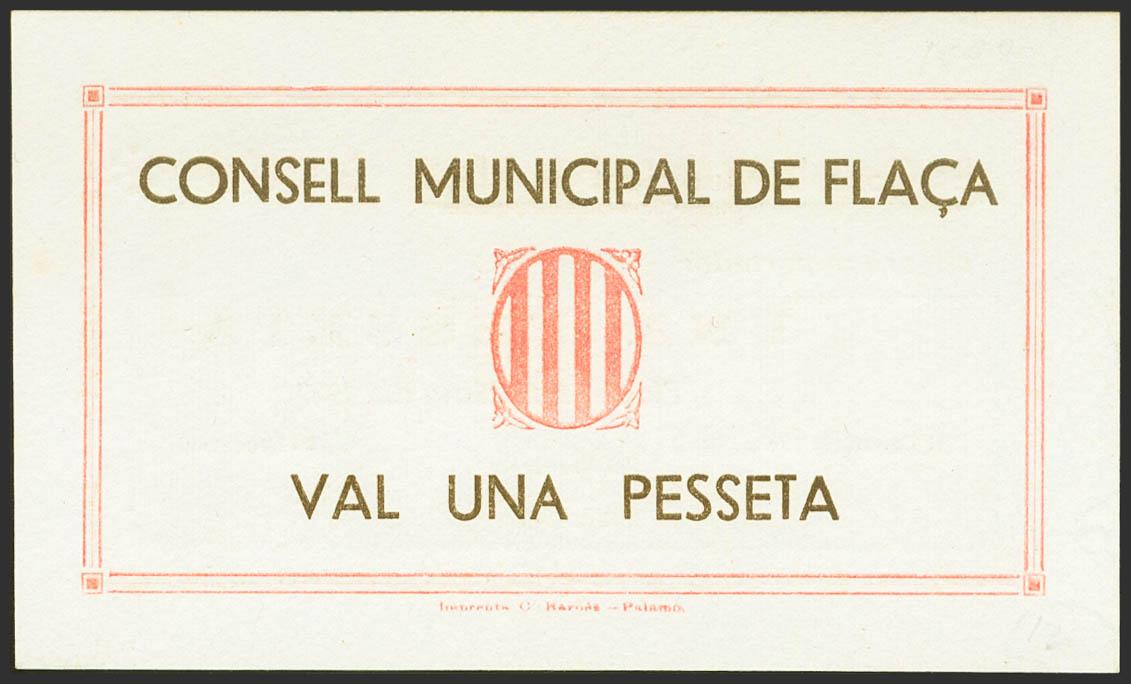 FLACA (GERONA). 1 Peseta. 14 de Mayo de 1937. (González: 7880). Raro, especialmente en esta excepcional calidad. SC.
