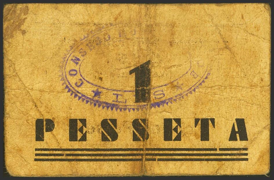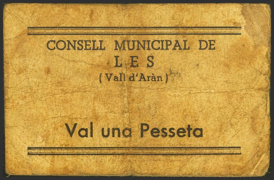 LES (LERIDA). 1 Peseta. 1937. (González: 8307). Raro, pie de imprenta ilegible. BC-.