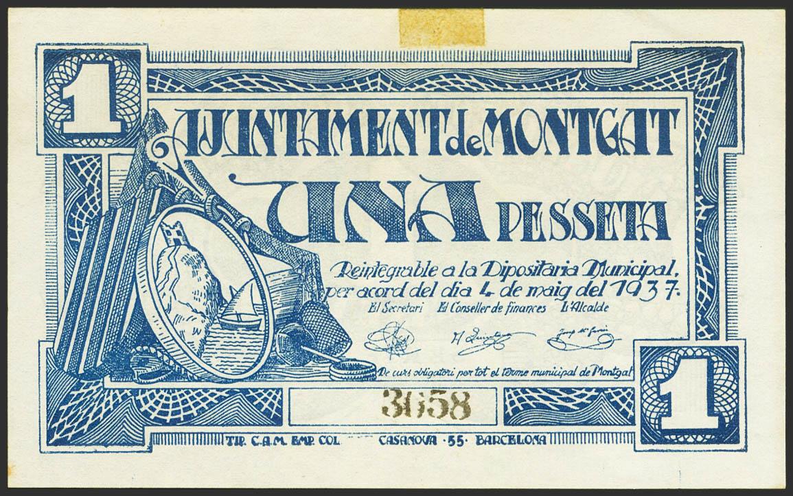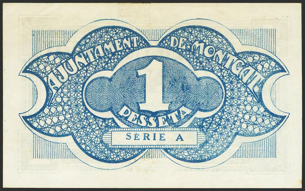 MONTGAT (BARCELONA). 1 Peseta. 1 de Mayo de 1937. Serie A. (González: 8794). Inusual en esta calidad. SC--.