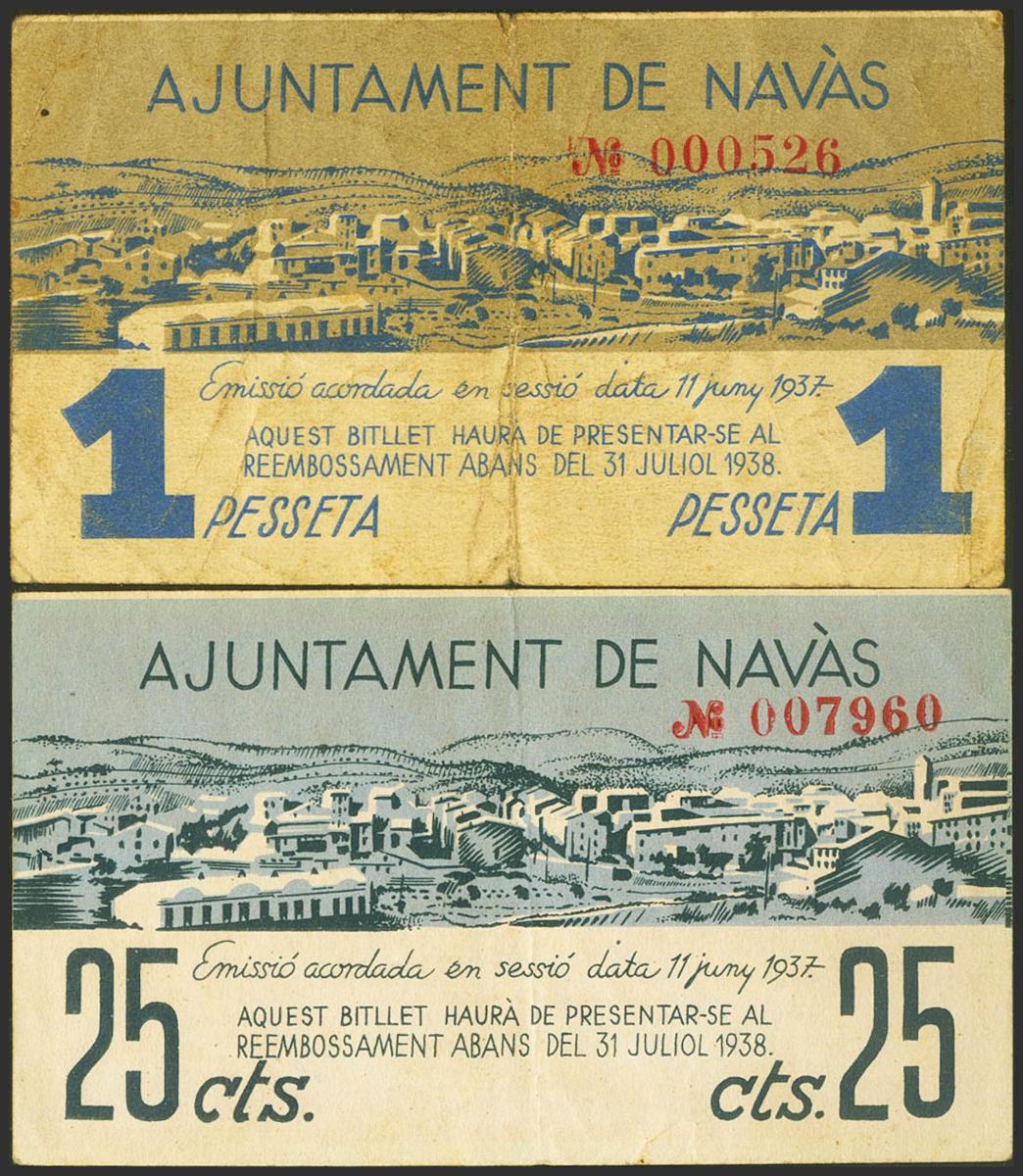 NAVAS (BARCELONA). 50 Céntimos y 1 Peseta. 11 de Junio de 1937. (González: 8887, 8889). MBC+/EBC.