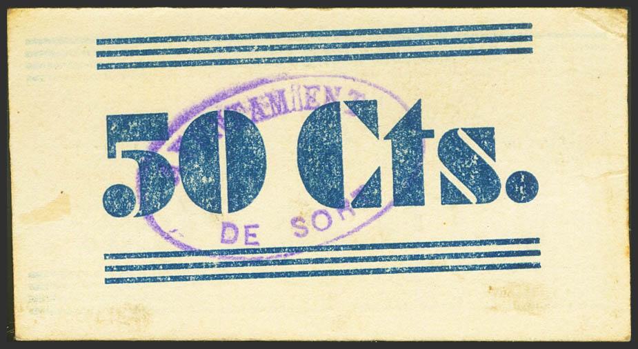 SORT (LERIDA). 50 Céntimos. (1936ca). (González: 10045). Raro, especialmente en esta excepcional calidad. SC--.