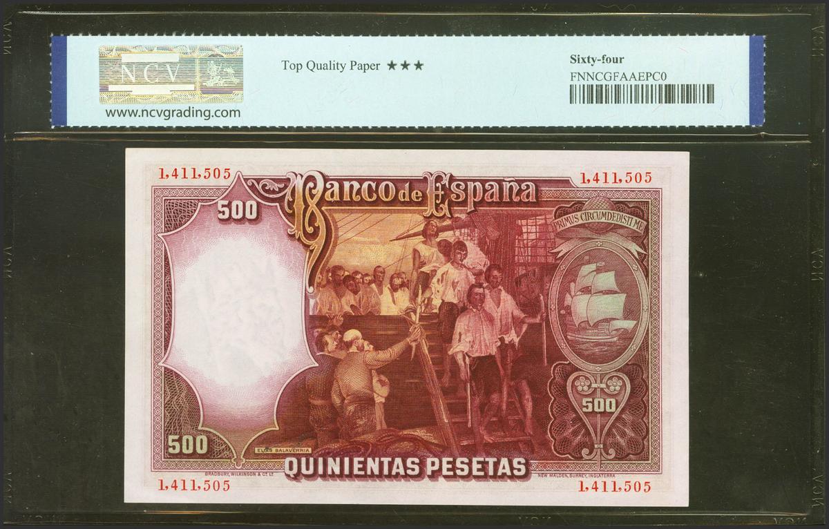 500 Pesetas. 25 de Abril de 1931. Sin serie. (Edifil 2021: 361, Pick: 84). Apresto orignal. SC. Encapsulado NCV64TPQ.