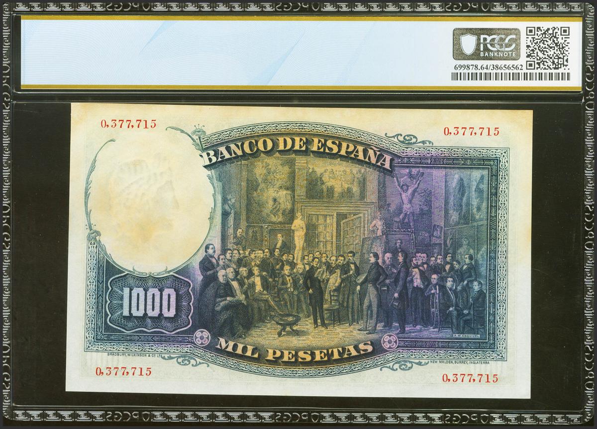 1000 Pesetas. 25 de abril de 1931. Sin serie. (Edifil 2017: 362, Pick: 84Aa). Encapsulado PCGS64. SC.
