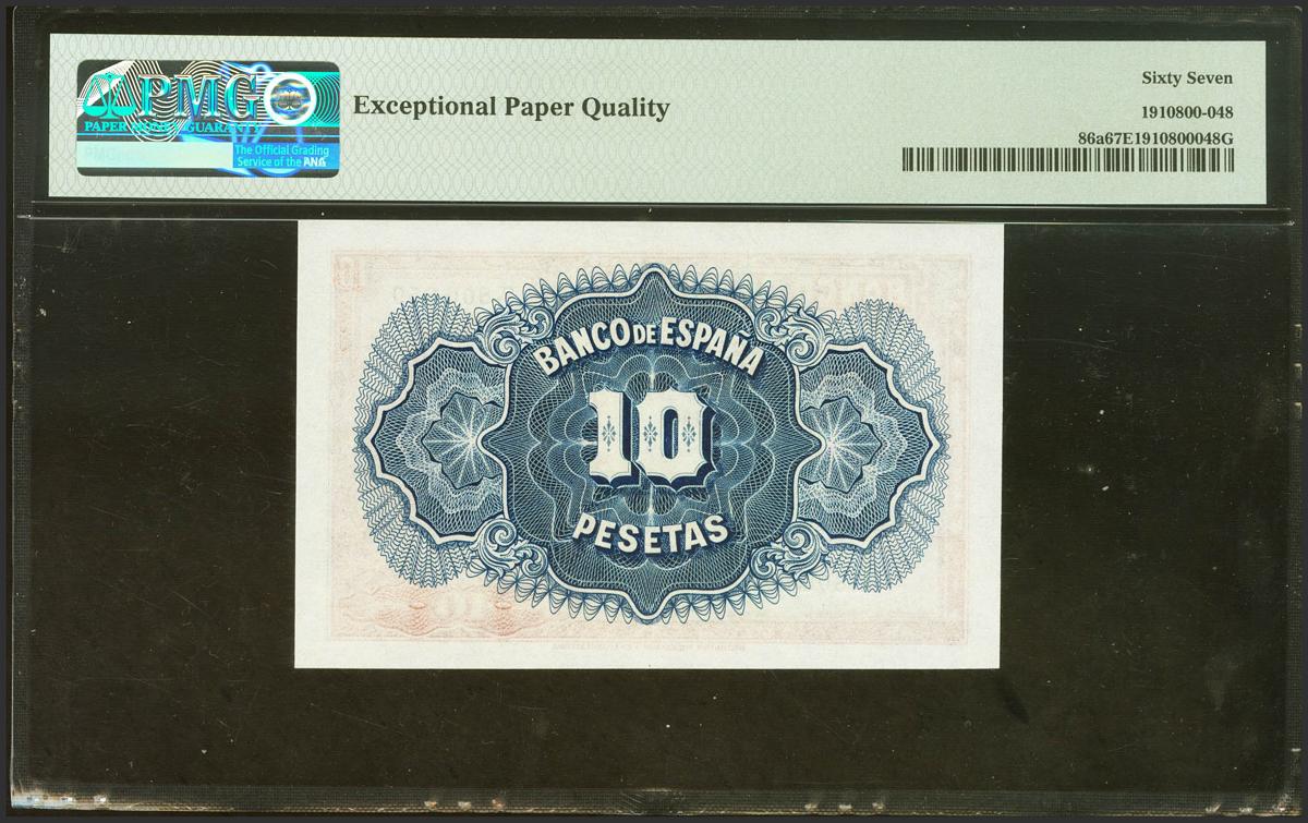 10 Pesetas. 1935. Certificado de Plata. Sin serie. (Edifil 2021: 364, 86a). Raro en esta excepcional calidad, apresto original. SC. Encapsulado PMG67EPQ.