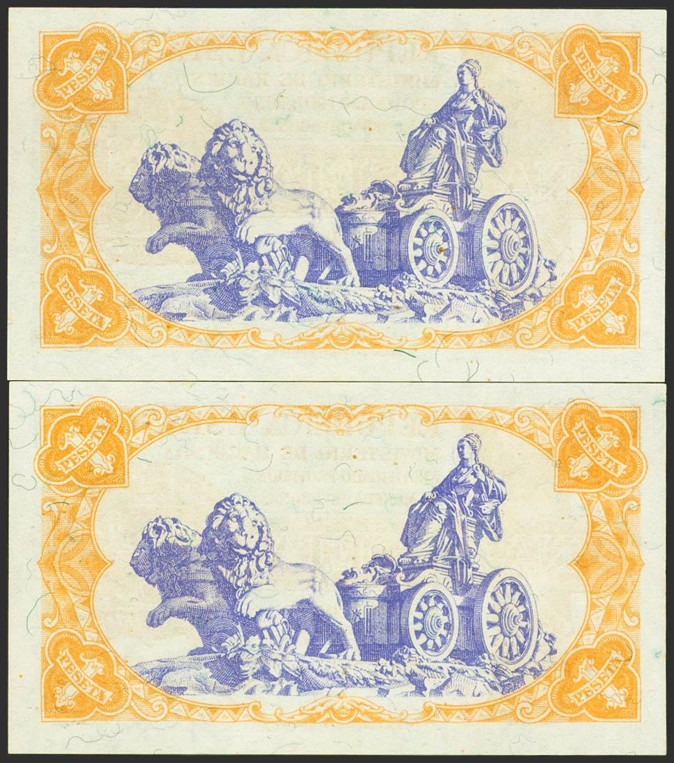 1 Peseta. 1937. Pareja correlativa. Serie A. (Edifil 2021: 392). Apresto original, típicos puntitos de óxido. SC/SC-.
