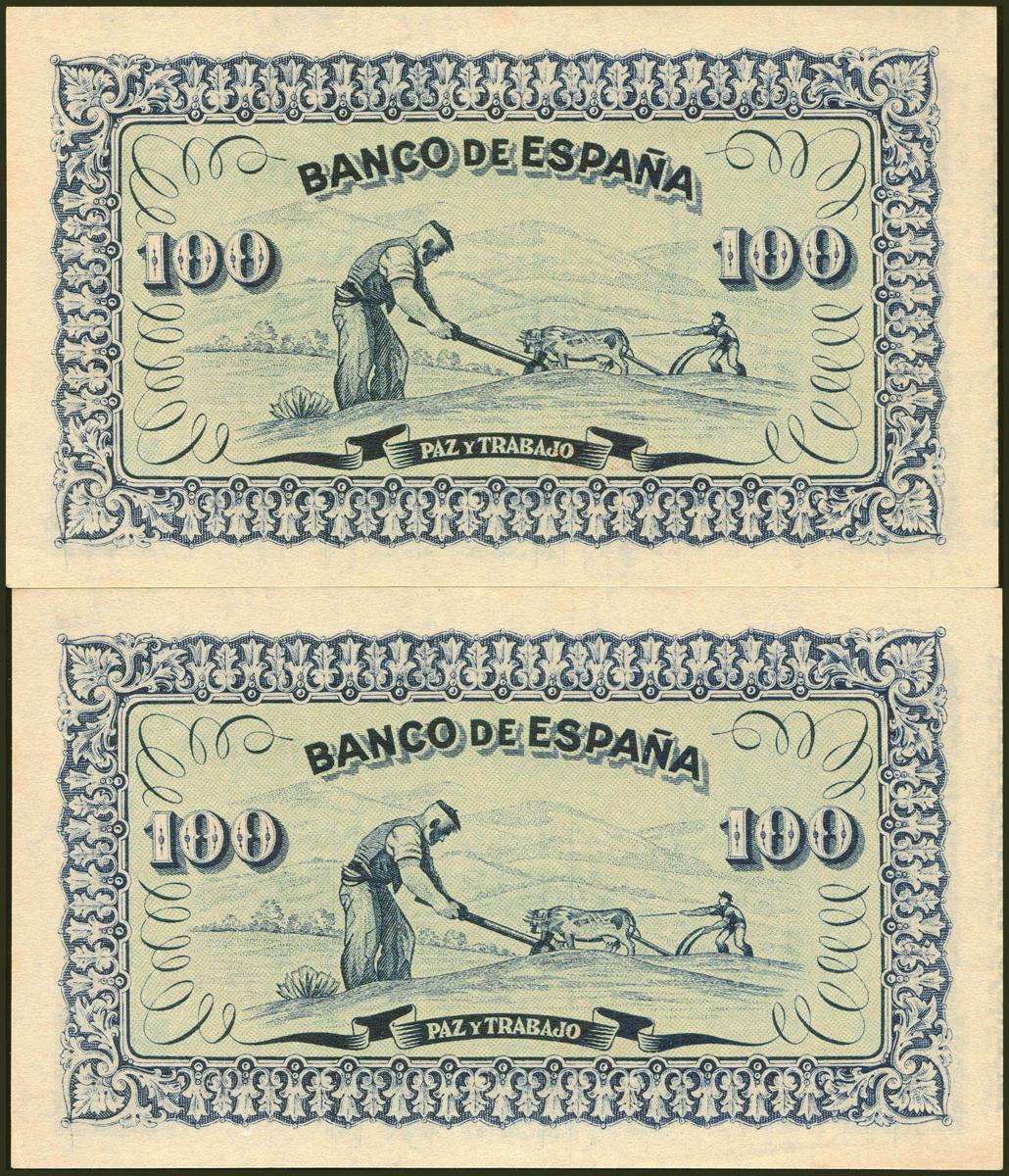 100 Pesetas. Septiembre 1937. Pareja correlativa. Banco de Gijón. Sin serie. (Edifil 2021: 399). Inusual, apresto original. SC-.