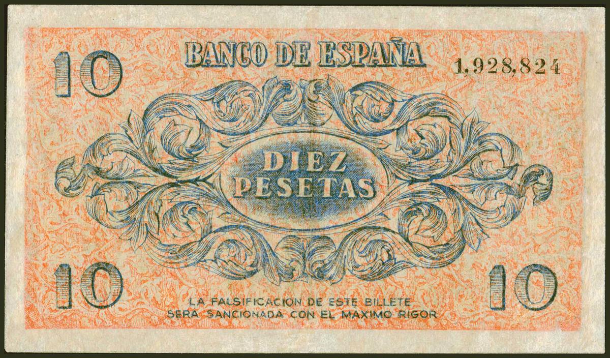 10 Pesetas. 21 de Noviembre de 1936. Sin serie. (Edifil 2021: 418). Inusual, pequeñas reparaciones. MBC-.