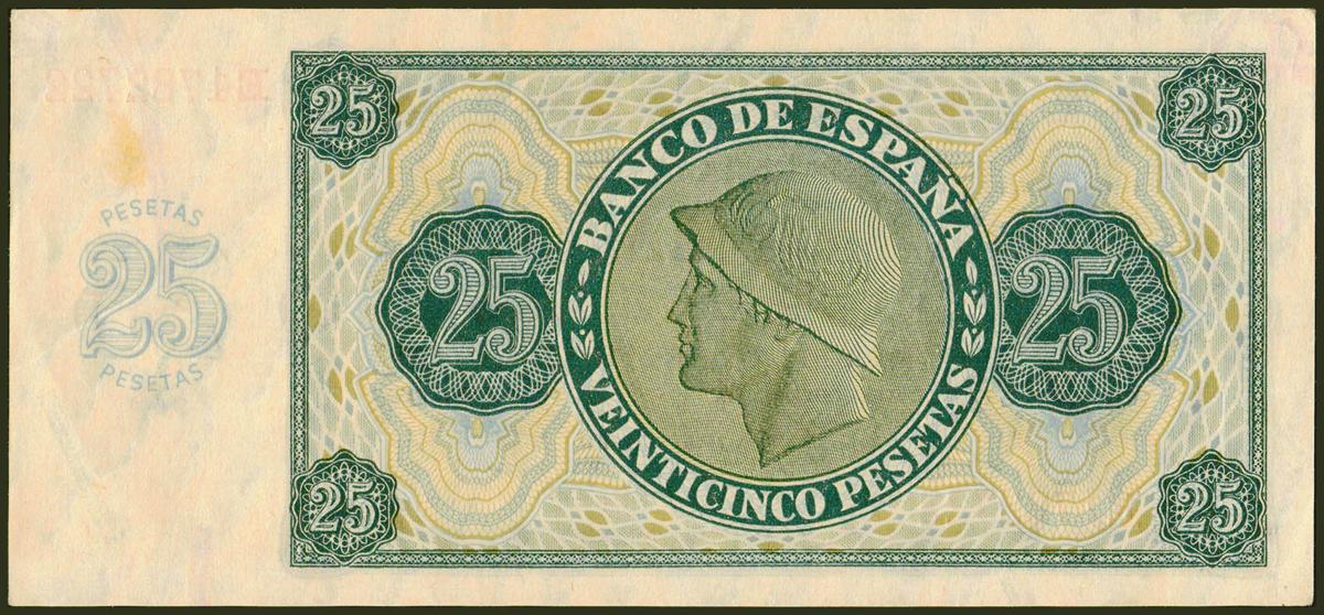 25 Pesetas. 21 de Noviembre de 1936. Serie E. (Edifil 2021: 419a). Conserva todo su apresto original. SC-.
