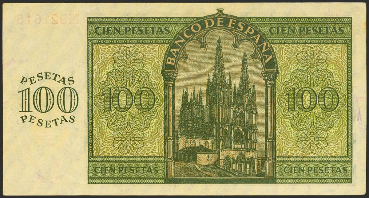 100 Pesetas. 21 de Noviembre de 1936. Serie M. (Edifil 2021: 421a). Conserva parte de su apresto original. EBC.