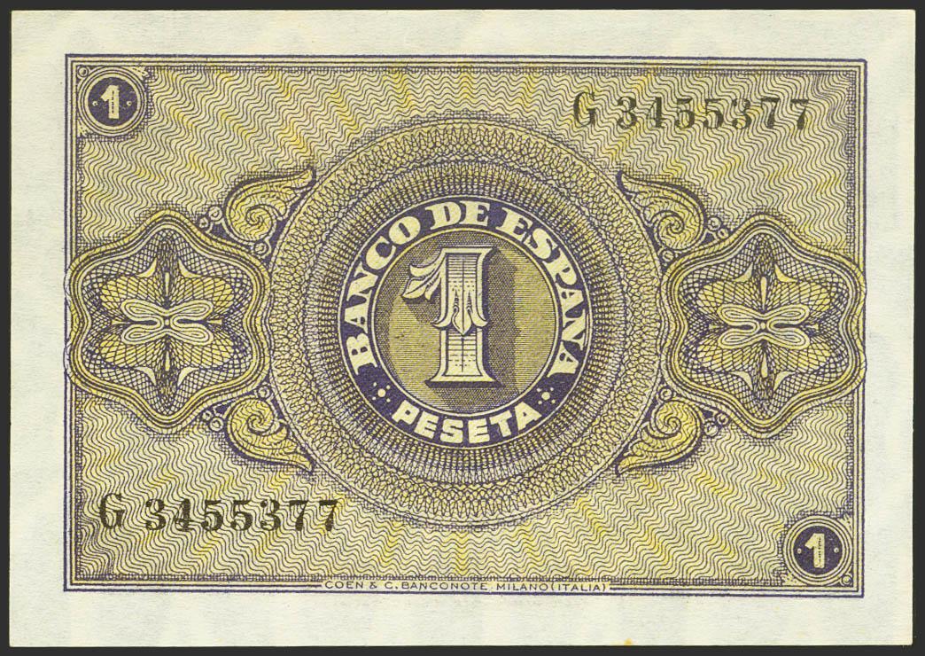 1 Peseta. 30 de Abril de 1938. Serie G. (Edifil 2021: 428a). Apresto original y puntito del tiempo. SC.