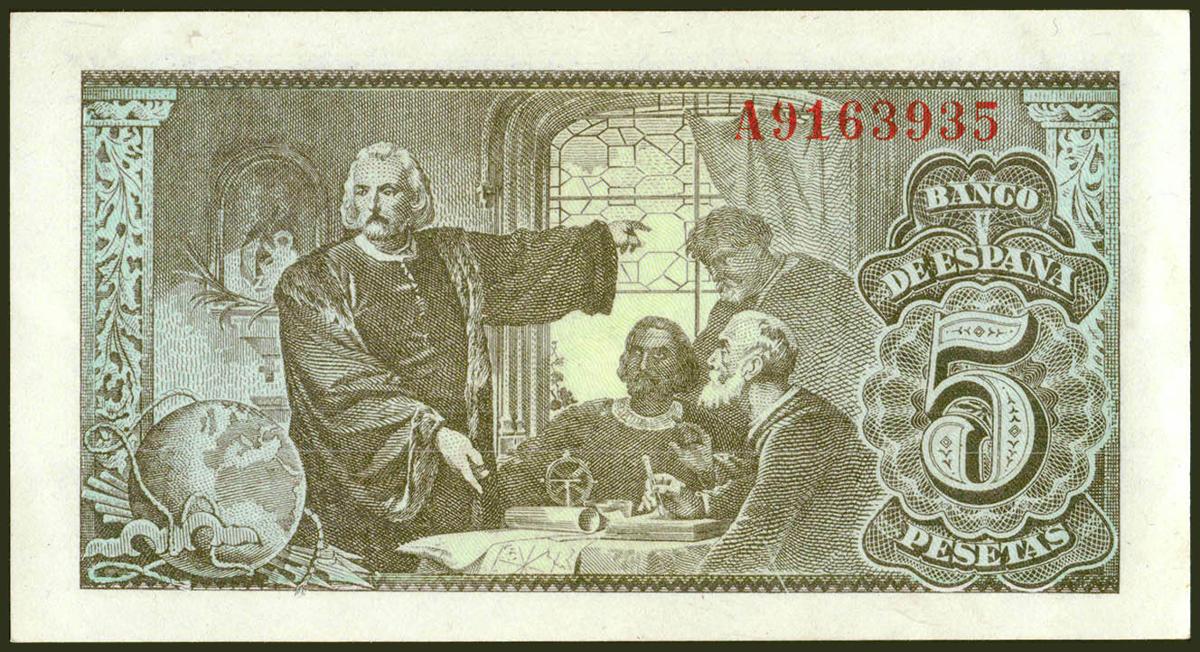 5 Pesetas. 13 de Febrero de 1943. Serie A. (Edifil 2021: 446a). Apresto original. SC-.
