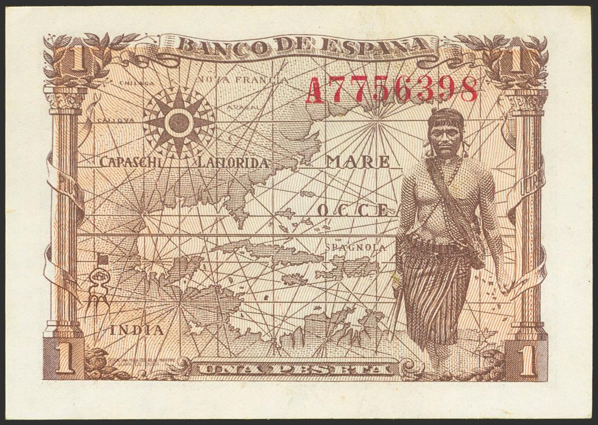 1 Peseta. 15 de Junio de 1945. Serie A. (Edifil 2021: 448a). Apresto original, manchita del tiempo en la esquina superior izquierda. SC-.