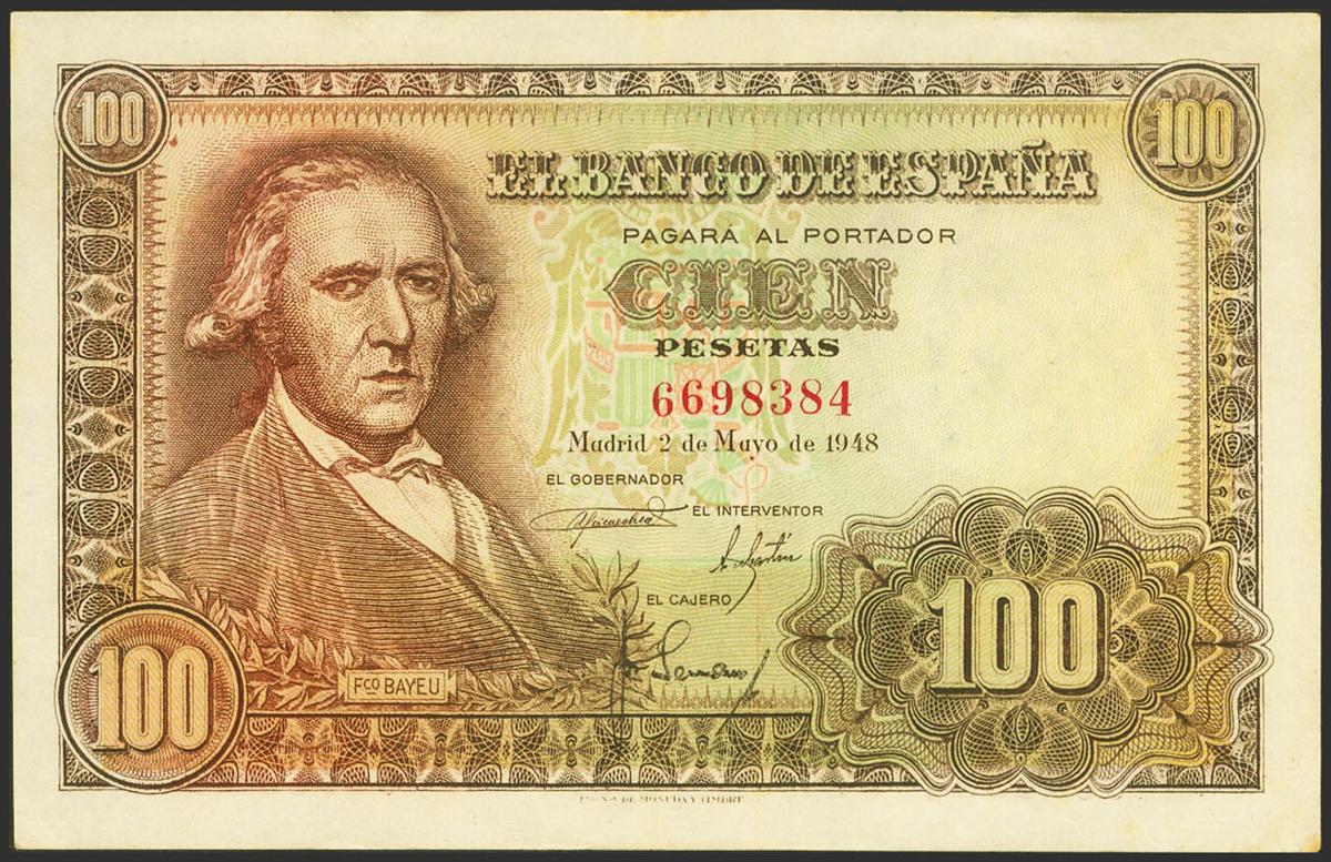 100 Pesetas. 2 de Mayo de 1948. Sin serie. (Edifil 2021: 456). Conserva parte del apresto original. EBC-.