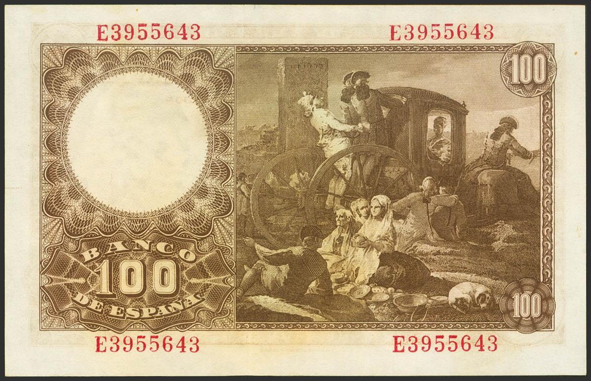 100 Pesetas. 2 de Mayo de 1948. Serie E. (Edifil 2021: 456a). Conserva gran parte del apresto original. EBC++.