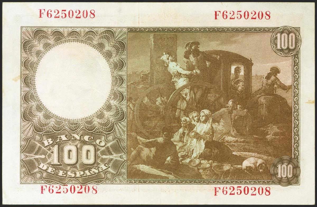 100 Pesetas. 2 de Mayo de 1948. Serie F. (Edifil 2021: 456a). Conserva parte del apresto original. EBC+.