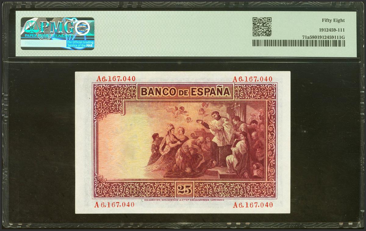 25 Pesetas. 12 de Octubre de 1926. Serie A. (Edifil 2021: 325a, Pick: 71a). Inusual en esta calidad. EBC++. Encapsulado PMG58.