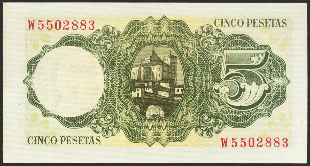 5 Pesetas. 16 de Agosto de 1951. Serie W. (Edifil 2021: 459a). Apresto original. SC.