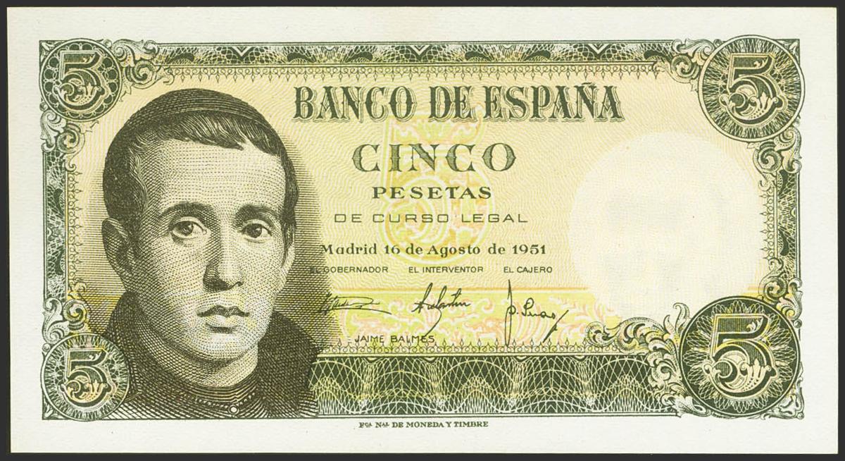 5 Pesetas. 16 de Agosto de 1951. Serie 1E. (Edifil 2021: 459a). Apresto origina. SC.