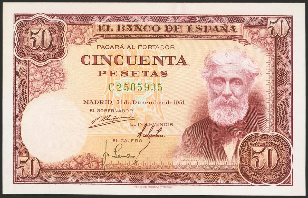50 Pesetas. 31 de Diciembre de 1951. Serie C. (Edifil 2017: 462a). Conserva todo su apresto original. SC.