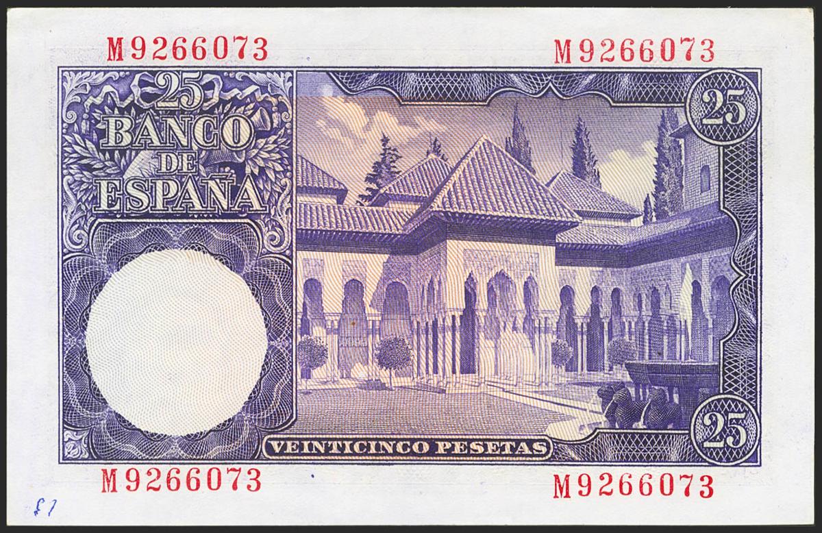 25 Pesetas. 22 de Julio de 1954. Serie M. (Edifil 2021: 467a). Conserva parte de su apresto original. EBC.