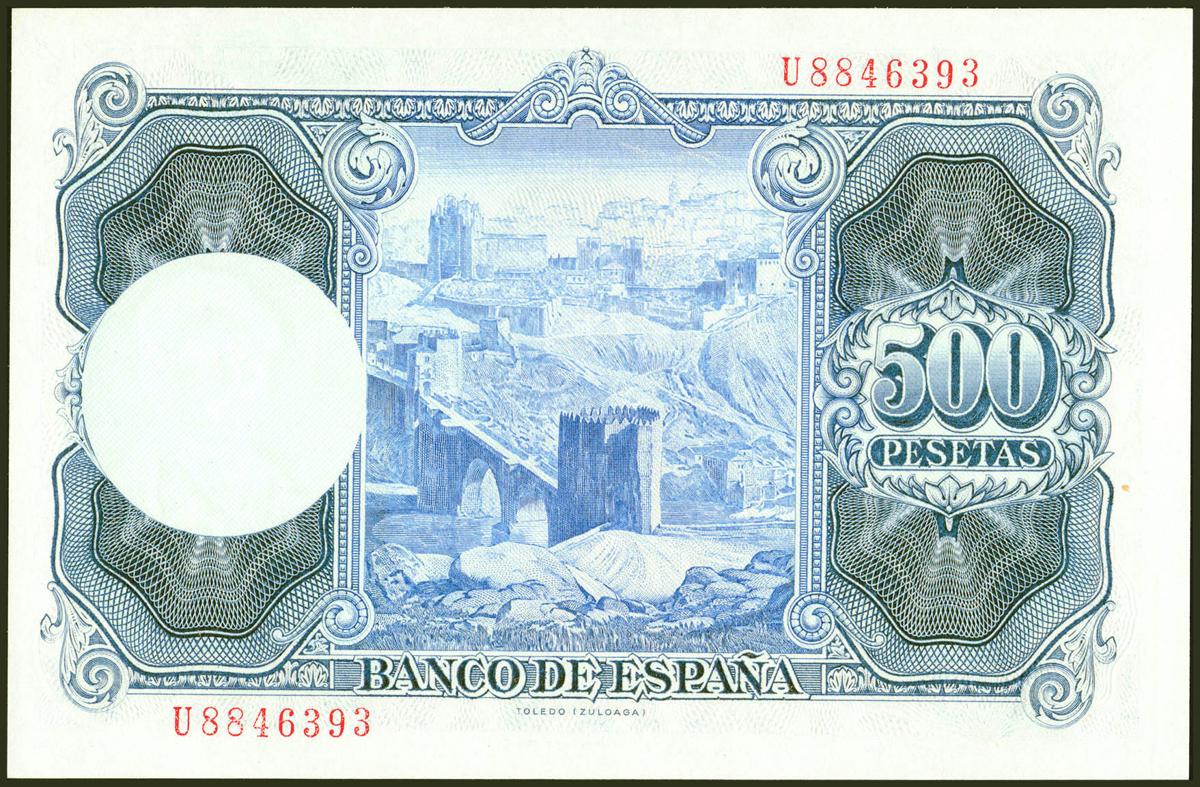 500 Pesetas. 22 de Julio de 1954. Serie U. (Edifil 2021: 468b). Conserva todo su apresto original y pliegue natural del papel. SC--.