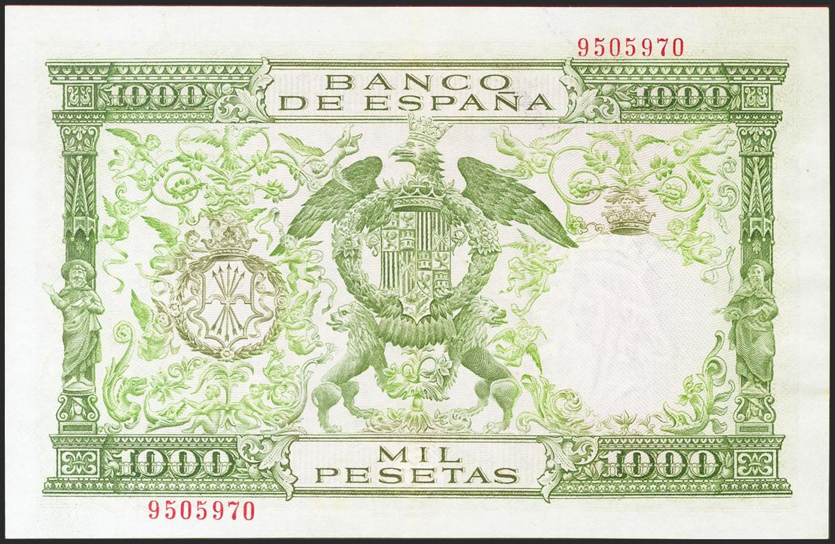 1000 Pesetas. 29 de Noviembre de 1957. Sin serie. (Edifil 2021: 469). Inusual, conserva gran parte de su apresto original. EBC.