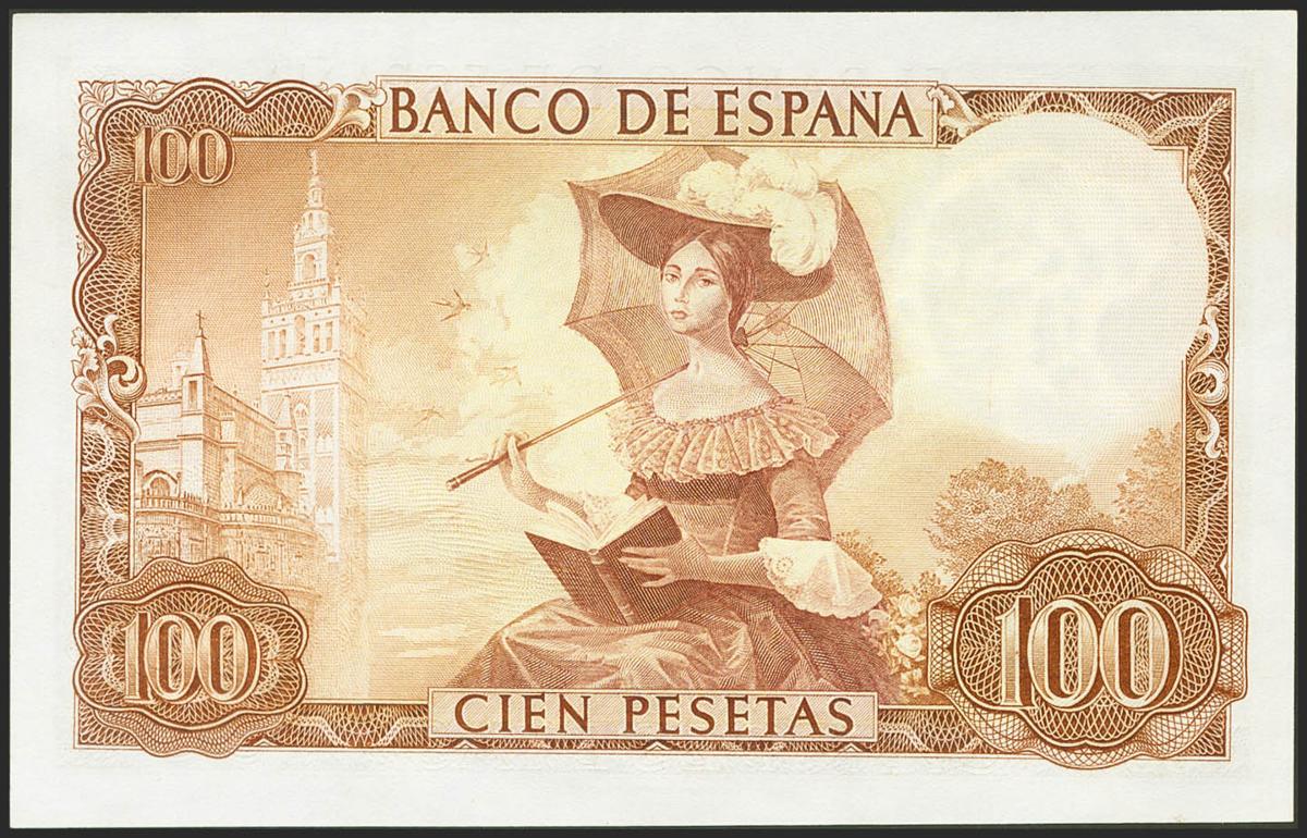 100 Pesetas. 19 de Noviembre de 1965. Serie 1I. (Edifil 2021: 470a). Conserva todo su apresto original. SC-.