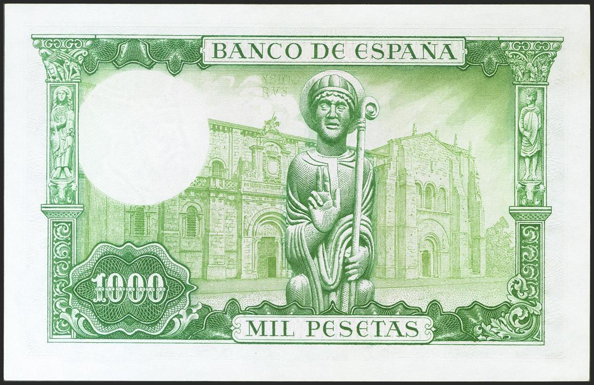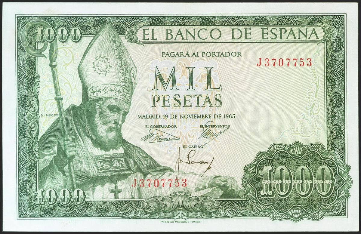 1000 Pesetas. 19 de Noviembre de 1965. Serie J. (Edifil 2021: 471b). Conserva gran parte de su apresto original. SC.