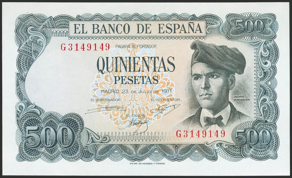 500 Pesetas. 23 de Julio de 1971. Serie G. (Edifil 2021: 473a). Apresto original. SC.