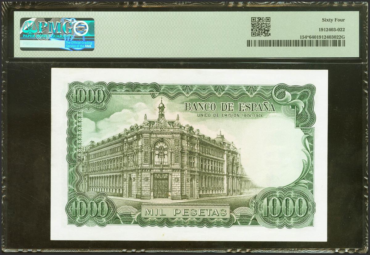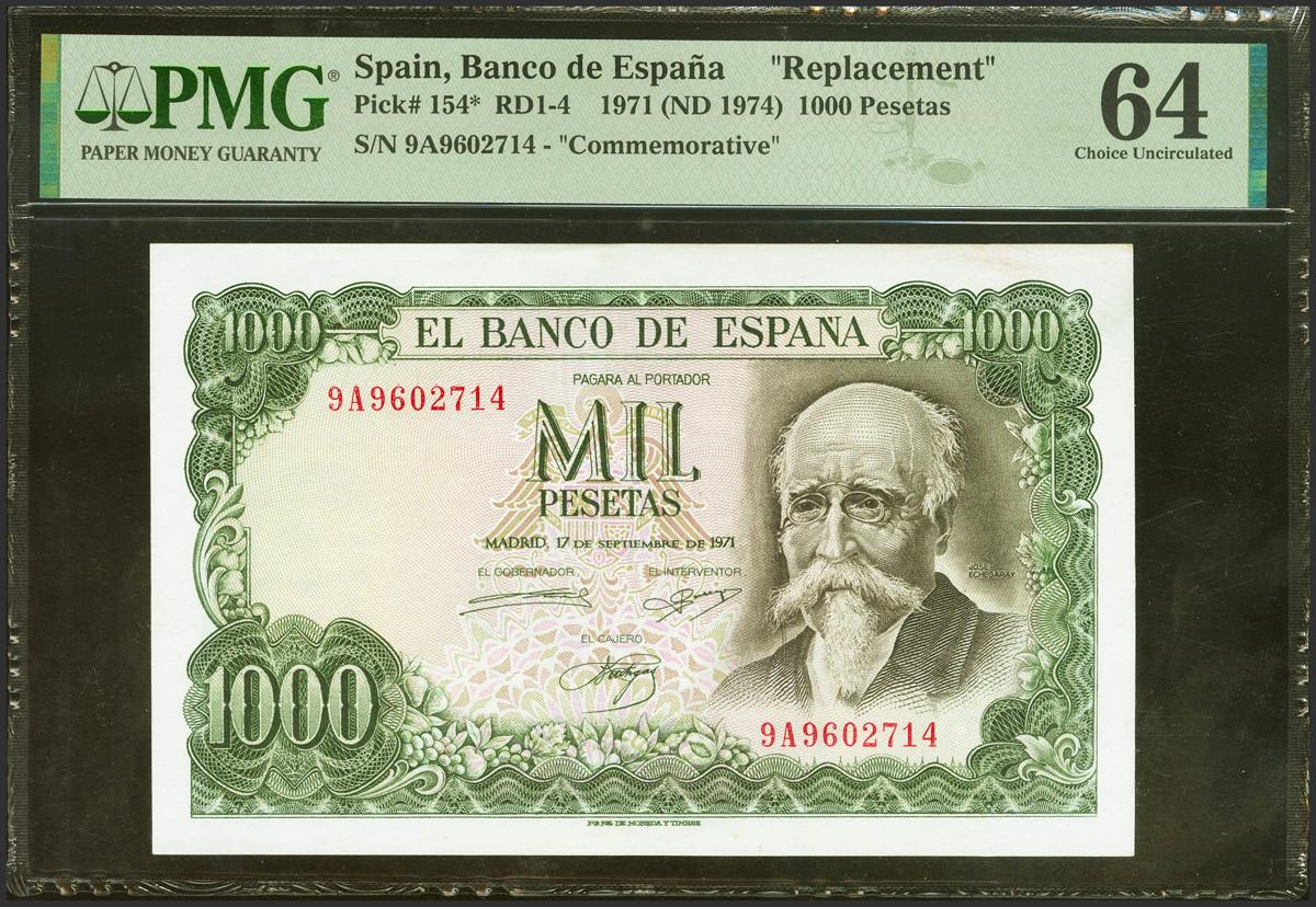 1000 Pesetas. 17 de Septiembre de 1971. Serie especial 9A. (Edifil 2021: 474d, Pick: 154*). Rara serie. SC. Encapsulado PMG64.