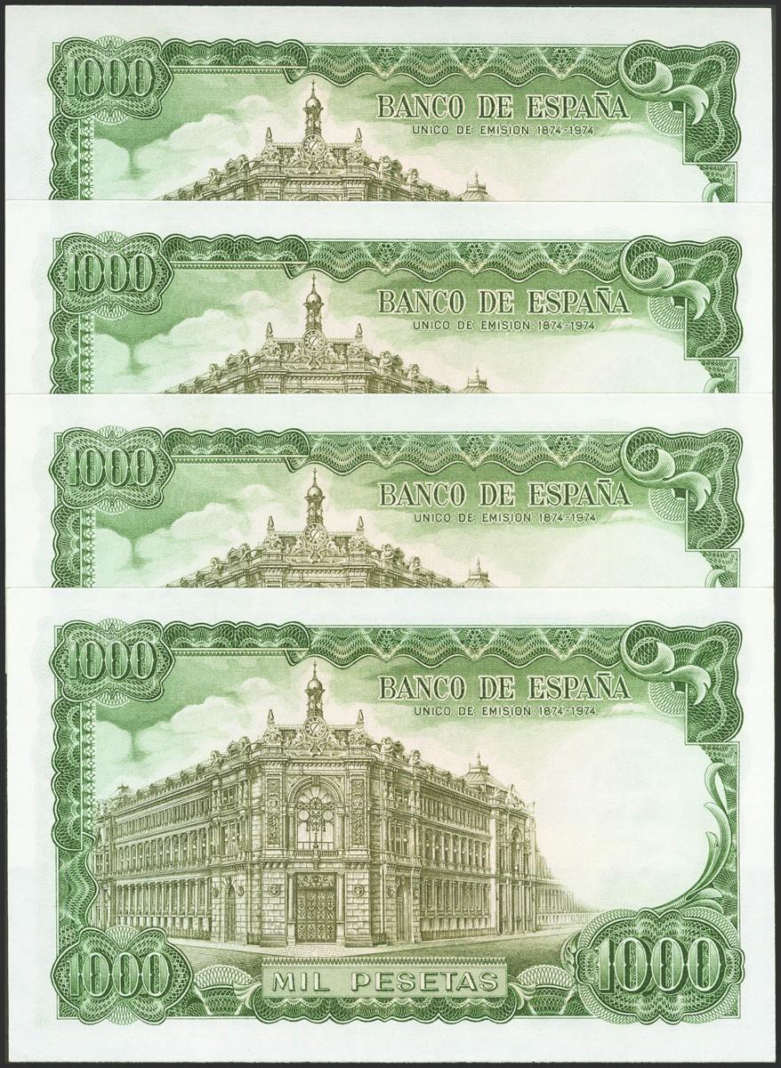 Conjunto de 4 billetes correlativos de 1000 Pesetas emitidos el 17 de Septiembre de 1971, todos ellos con la serie K (Edifil 2021: 474b), conservando su apresto original. SC.