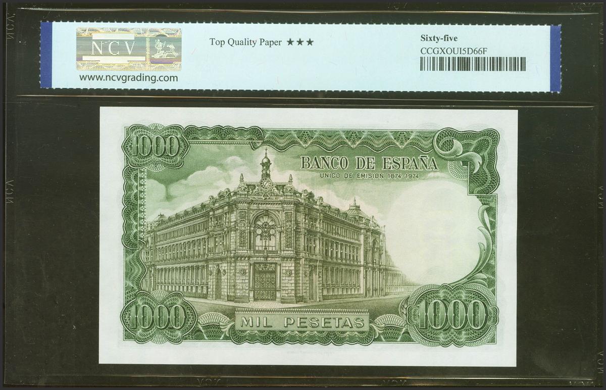 1000 Pesetas. 17 de Septiembre de 1971. Serie 3Y. (Edifil 2021: 474c, Pick: 154). Inusual en esta calidad, apresto original. SC. Encapsulado NCV65TQP.