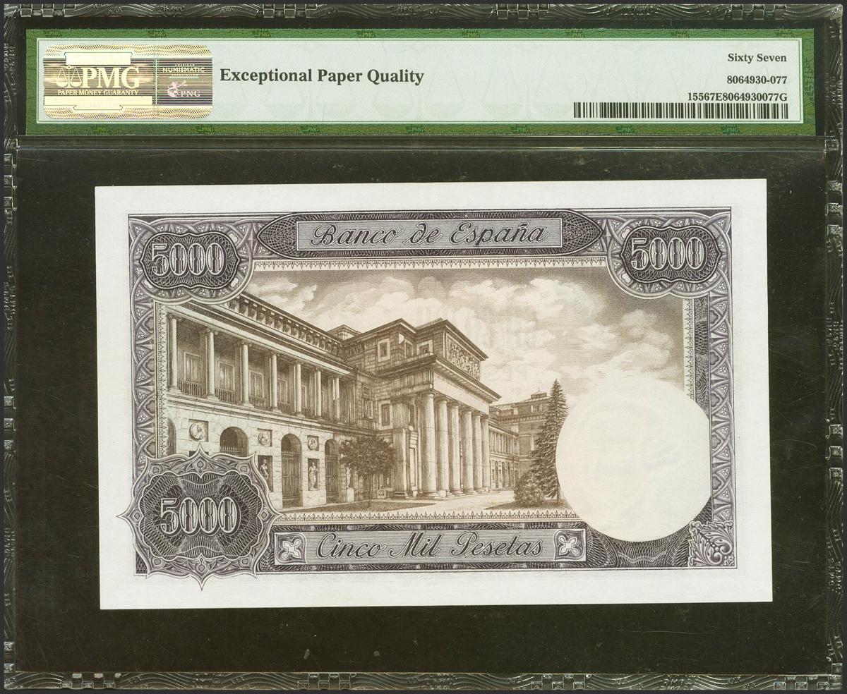 5000 Pesetas. 6 de Febrero de 1976. Sin serie. (Edifil 2021: 475, Pick: 155). Inusual en esta excepcional calidad, apresto original. SC. Encapsulado PMG67EPQ.