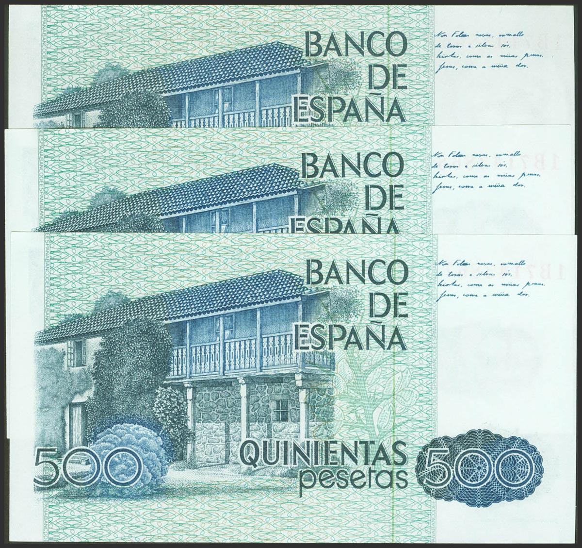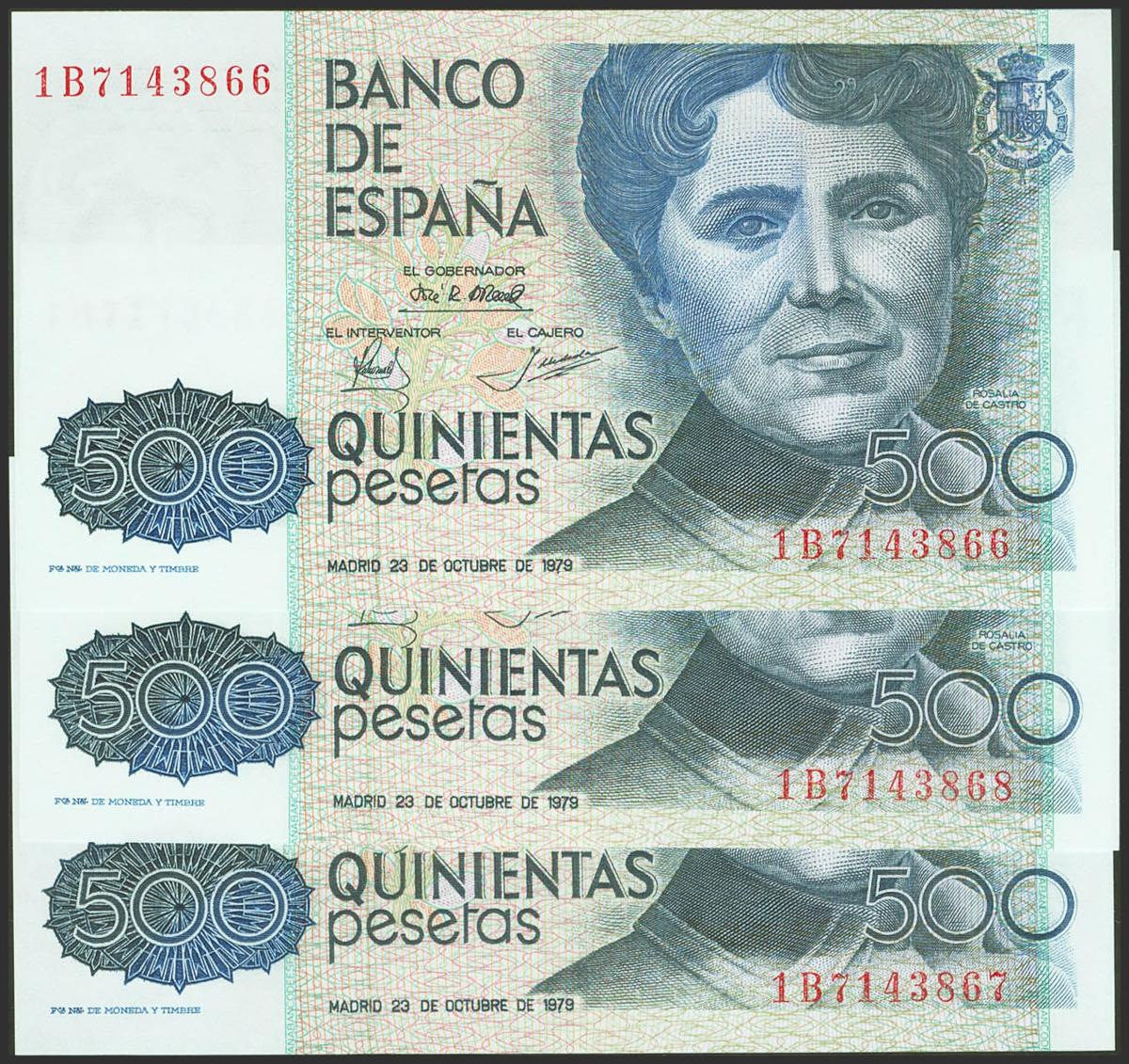 500 Pesetas. 23 de Octubre de 1979. Trío correlativo. Serie 1B. (Edifil 2017: 476a). SC.