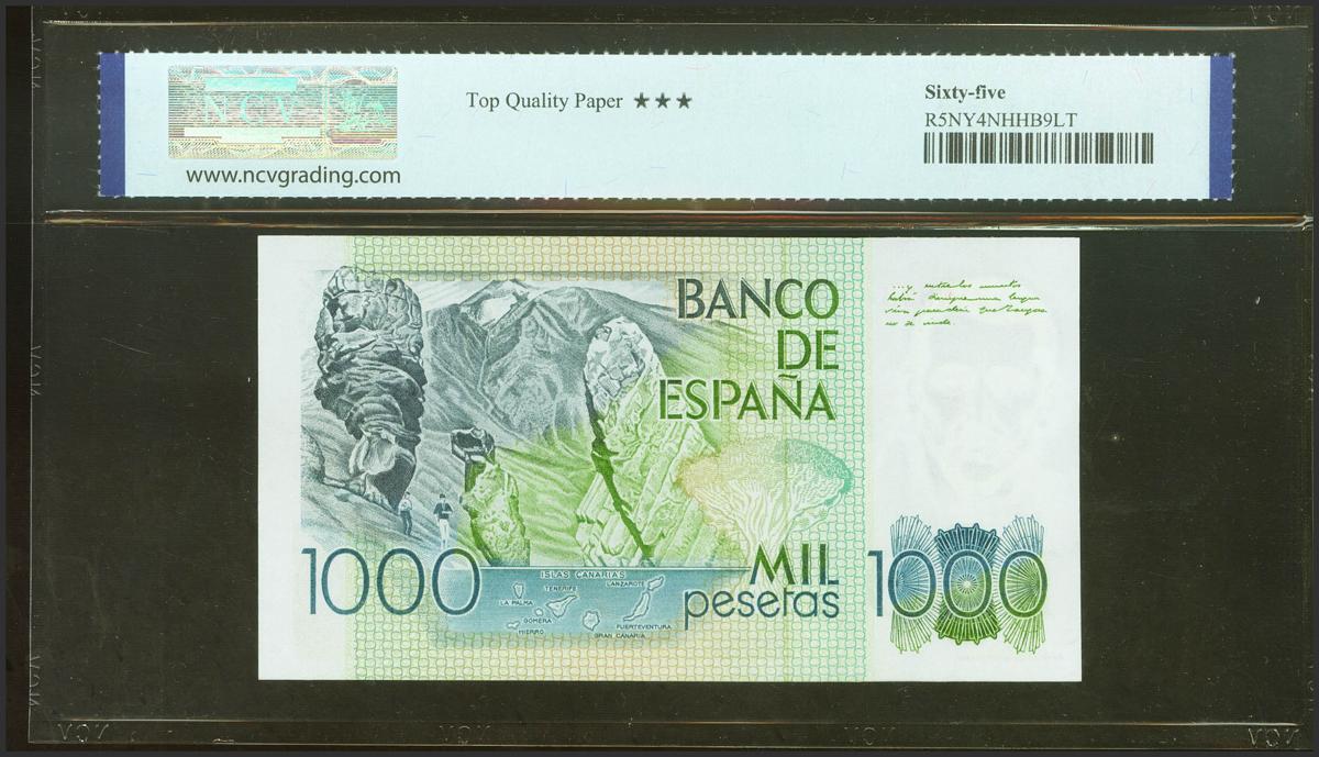 1000 Pesetas. 23 de Octubre de 1979. Sin serie. (Edifil 2021: 477, Pick: 158a). SC. Encapsulado NCV65TQP.