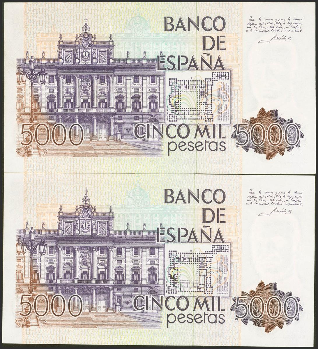5000 Pesetas. 23 de Octubre de 1979. Pareja correlativa. Sin serie. (Edifil 2021: 478). SC.