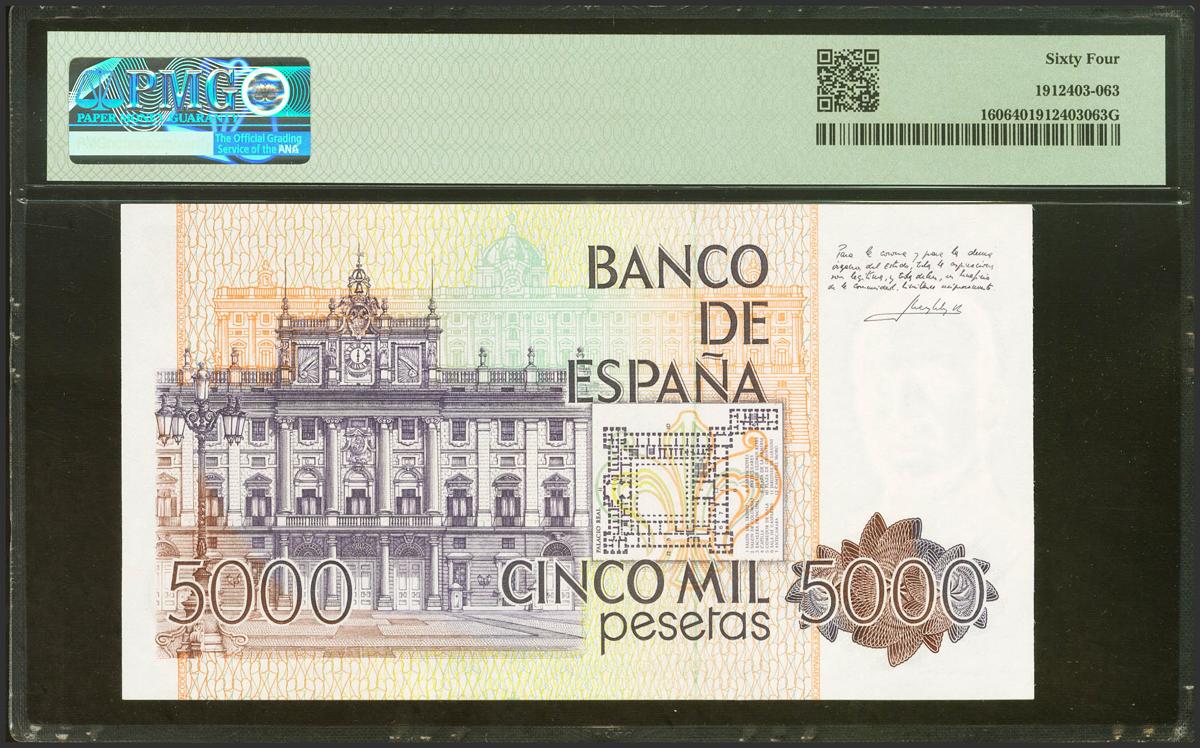 5000 Pesetas. 23 de Octubre de 1979. Serie H-B. (Edifil 2021: 478a, Pick: 160). SC. Encapsulado PMG64.