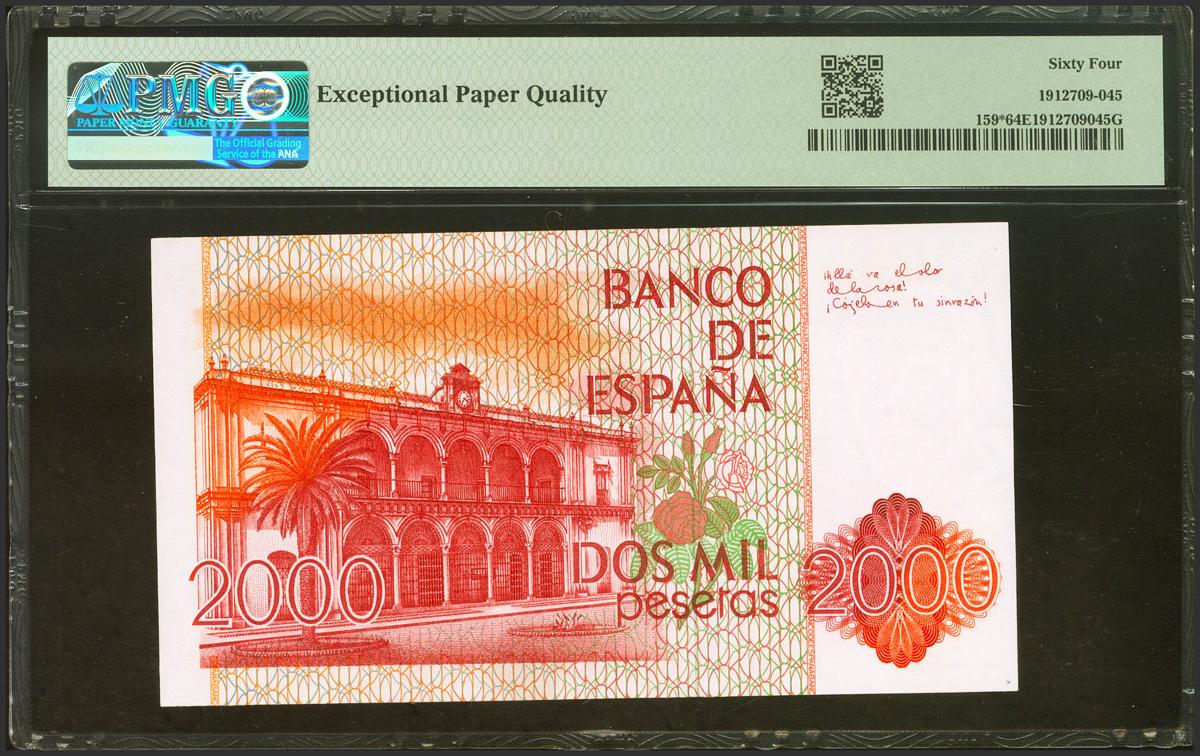 2000 Pesetas. 22 de Julio de 1980. Serie especial 9A. (Edifil 2021: 479b, Pick: 159*). Apresto original. SC. Encapsulado PMG64EPQ.