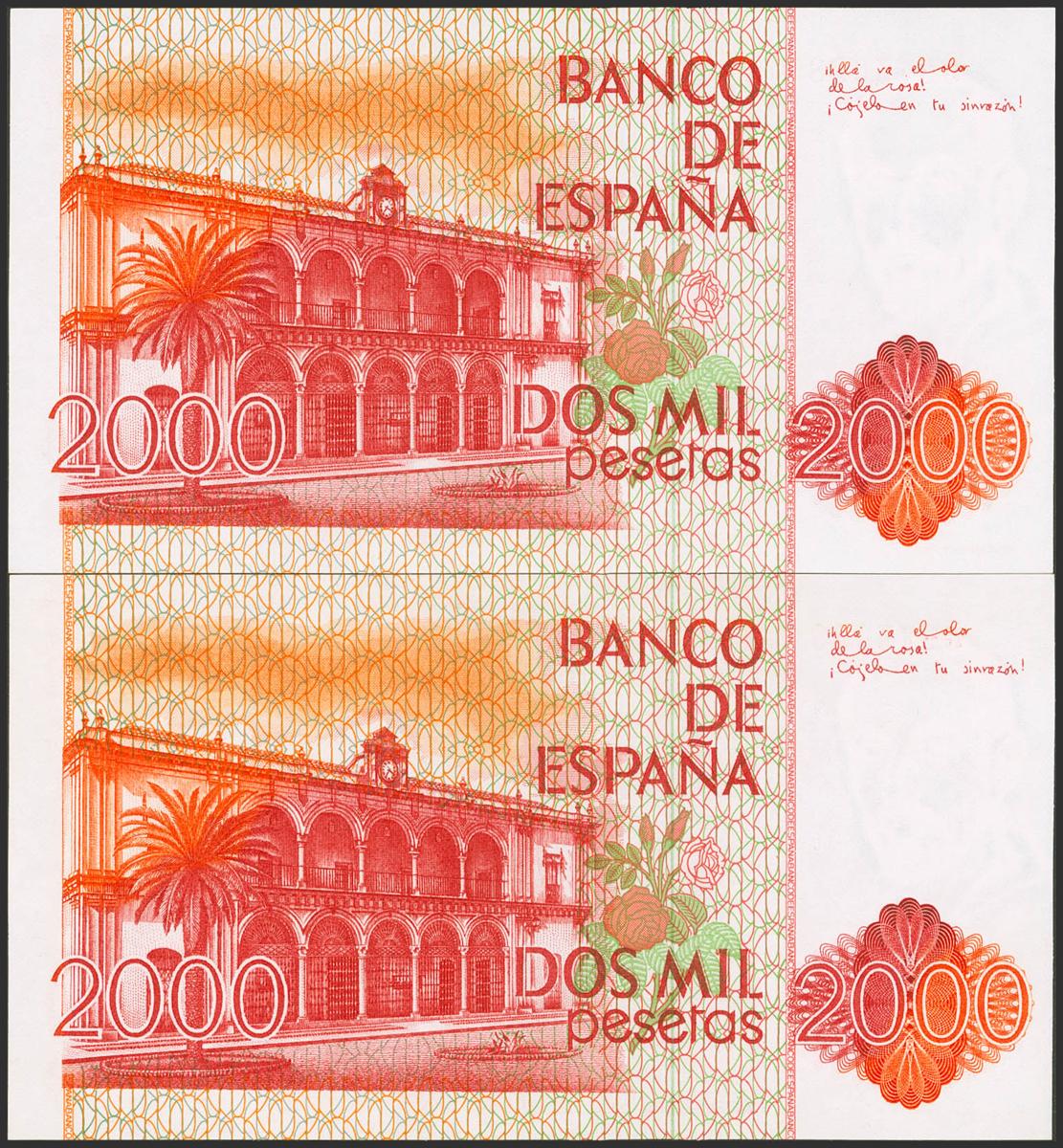 2000 Pesetas. 22 de Julio de 1980. Pareja correlativa. Sin serie. (Edifil 2021: 479). SC.