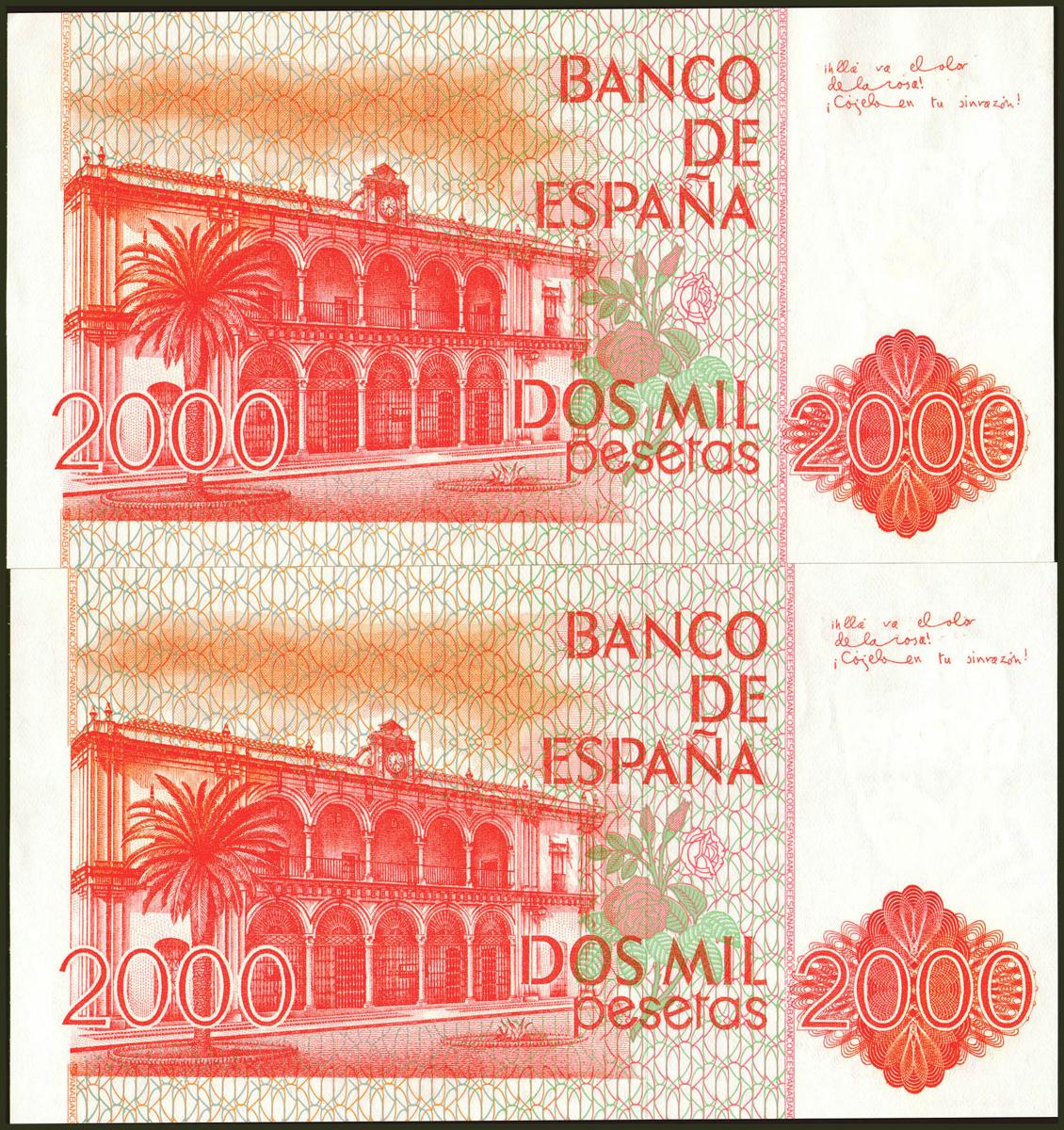 2000 Pesetas. 22 de Julio de 1980. Pareja correlativa. Sin serie. (Edifil 2017: 479). SC.