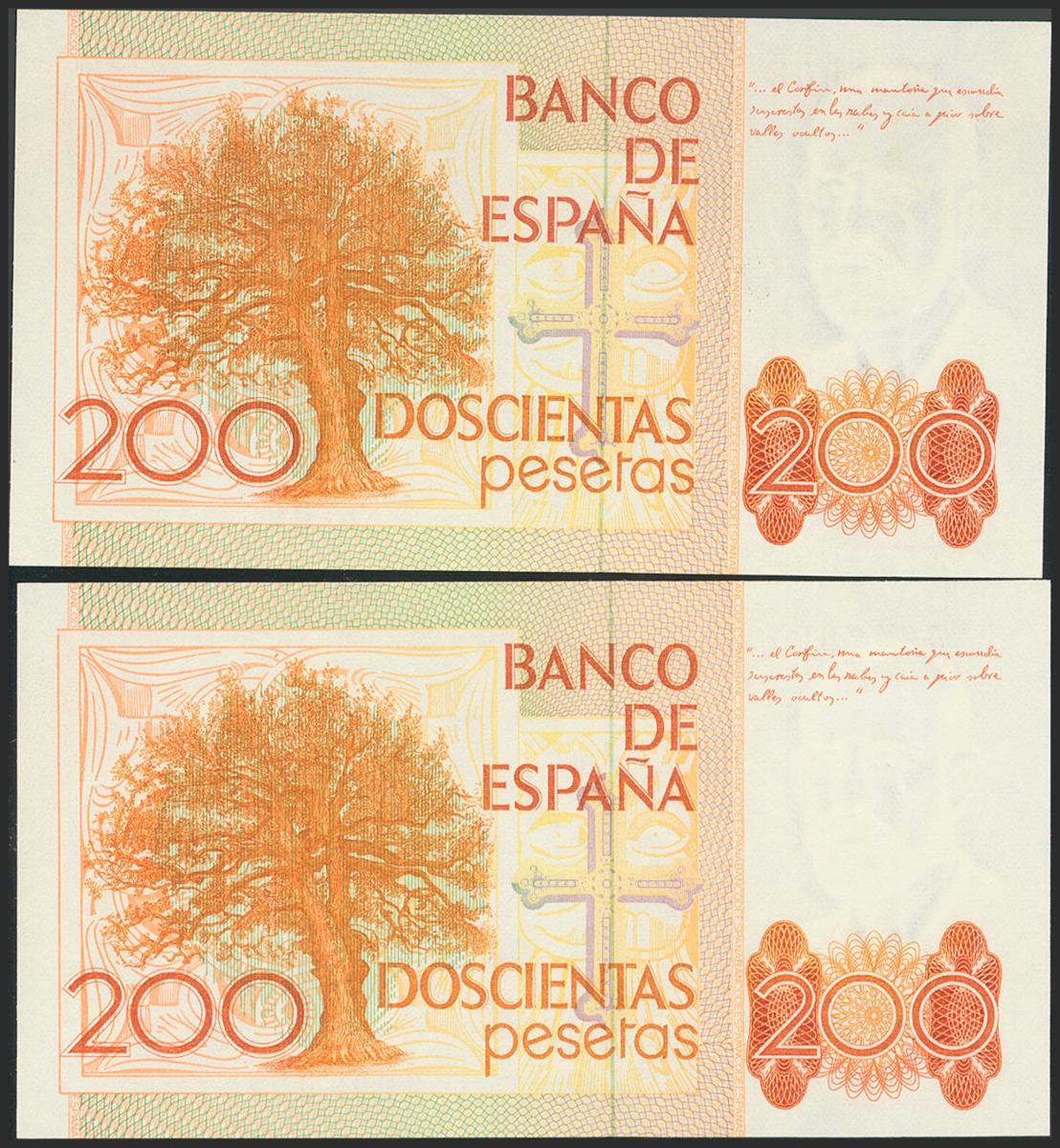 200 Pesetas. 16 de Septiembre de 1980. Pareja correlativa. Sin serie. (Edifil 2021: 480). SC.