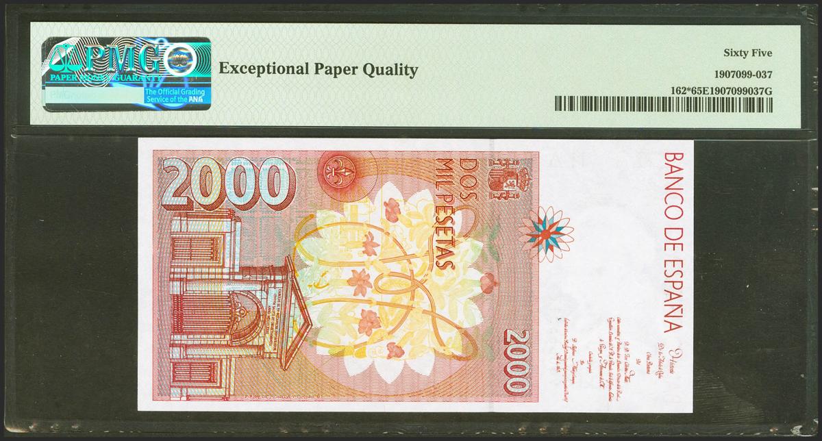 2000 Pesetas. 24 de Abril de 1992. Serie especial 9B. (Edifil 2021: 482Ab, Pick: 164*). Inusual en esta calidad. SC. Encapsulado PMG65EPQ.