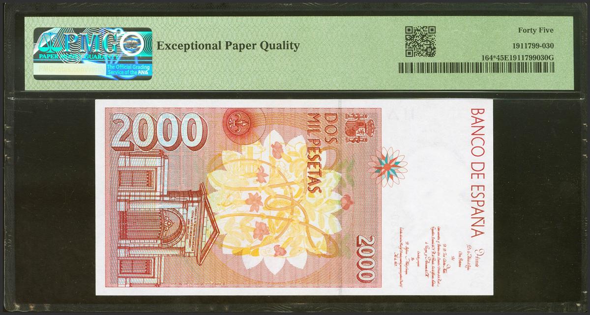 2000 Pesetas. 24 de Abril de 1992. Serie especial 9C. (Edifil 2021: 482Ab, Pick: 164*). Apresto original. EBC-. Encapsulado PMG45EPQ.