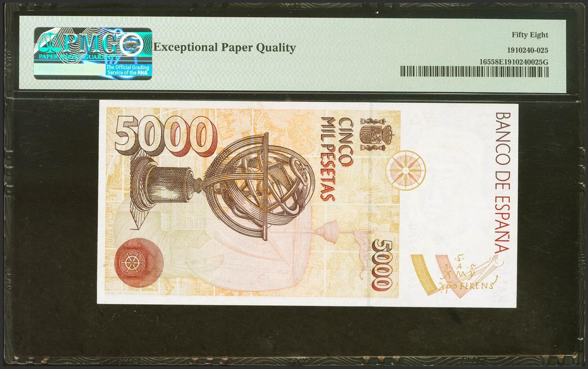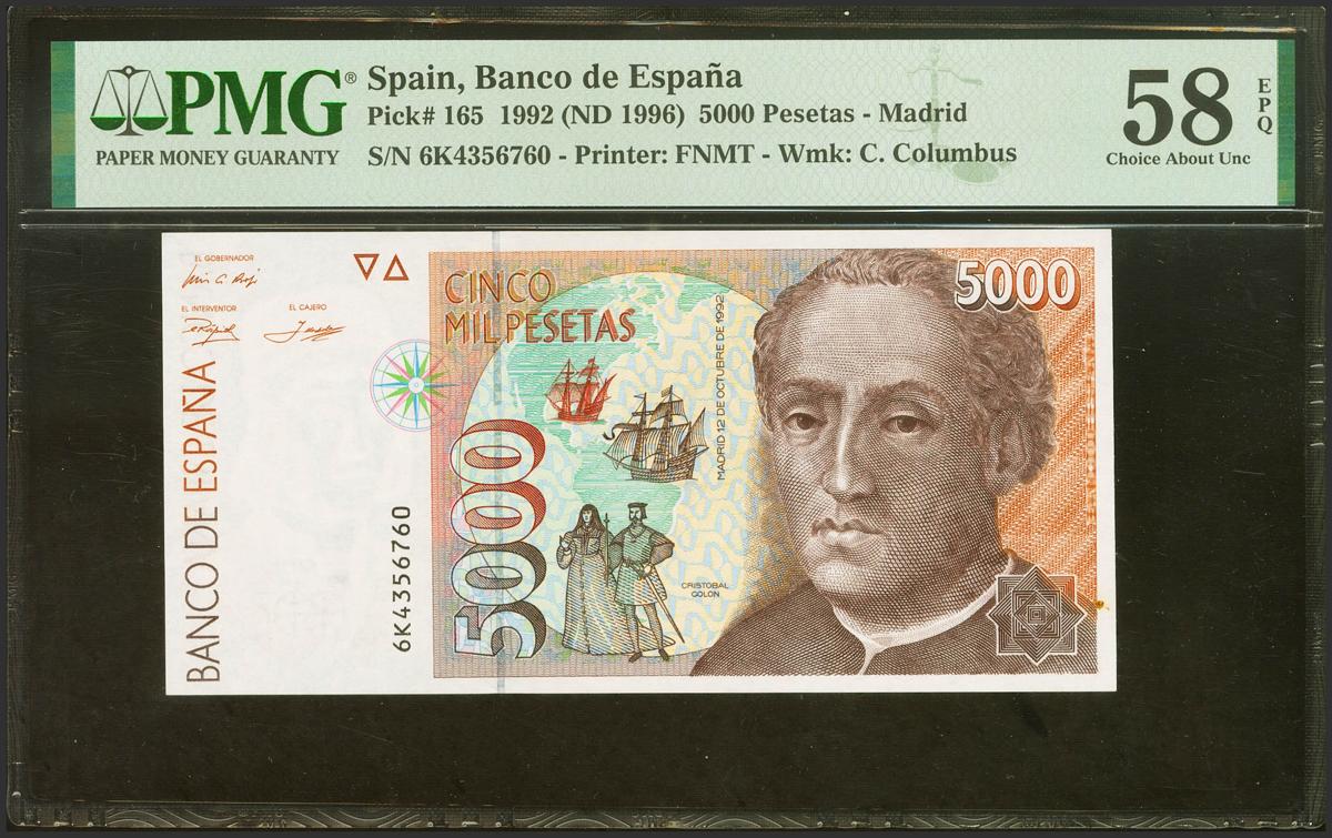 5000 Pesetas. 12 de Octubre de 1992. Serie 6K, última serie emitida. (Edifil 2017: 484a, Pick: 165). EBC+++. Encapsulado PMG58EPQ.