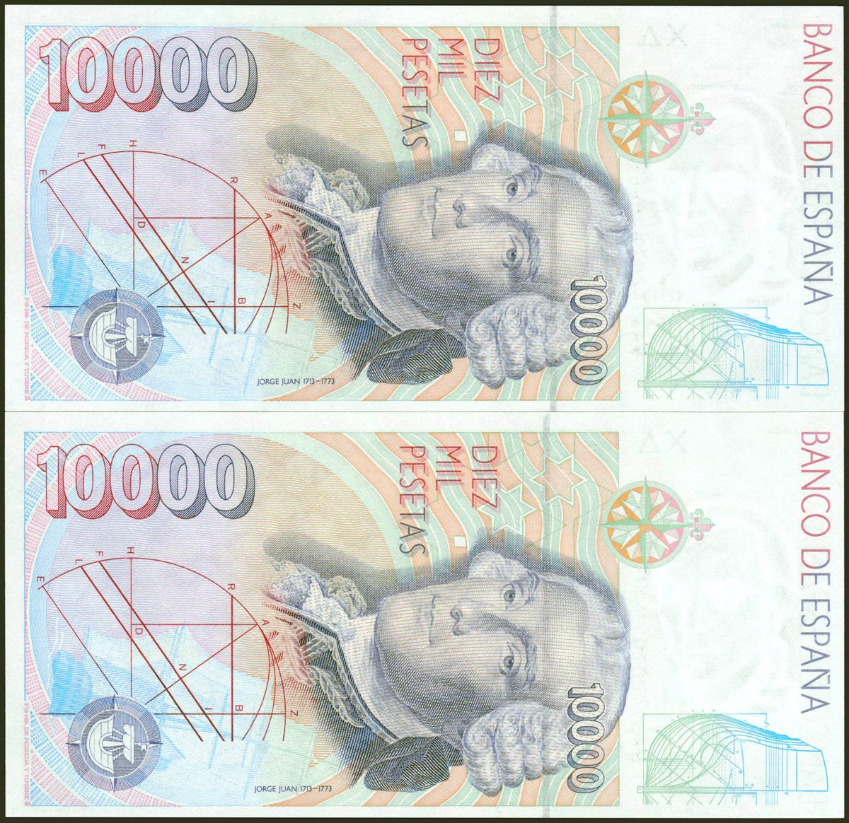 10000 Pesetas. 12 de Octubre de 1992. Pareja correlativa. Serie especial 9A. (Edifil 2021: 485b). SC.