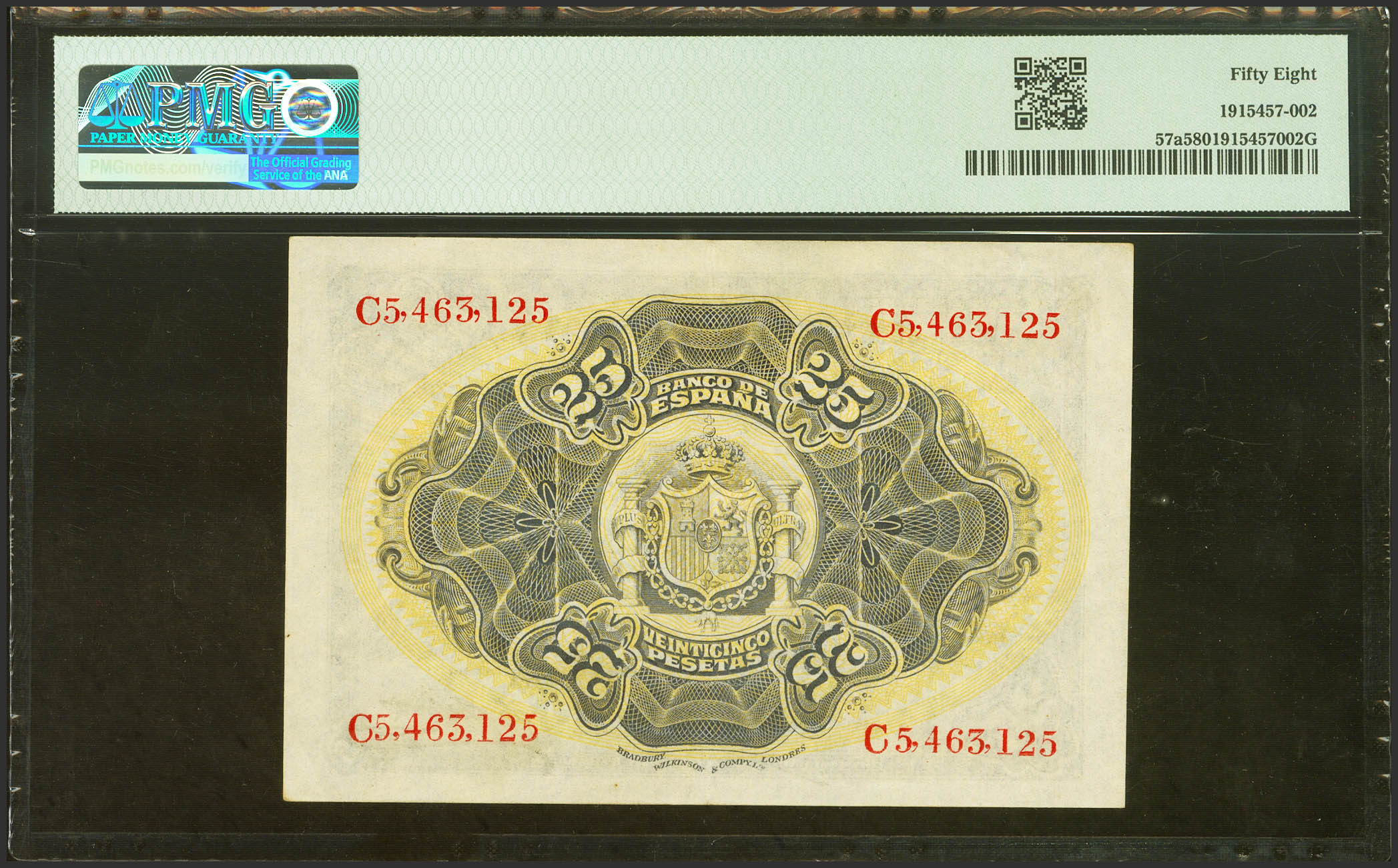 25 Pesetas. 24 de Septiembre de 1906. Serie C. (Edifil 2021: 314a, Pick: 57a). Inusual en esta calidad. EBC++. Encapsulado PMG58.