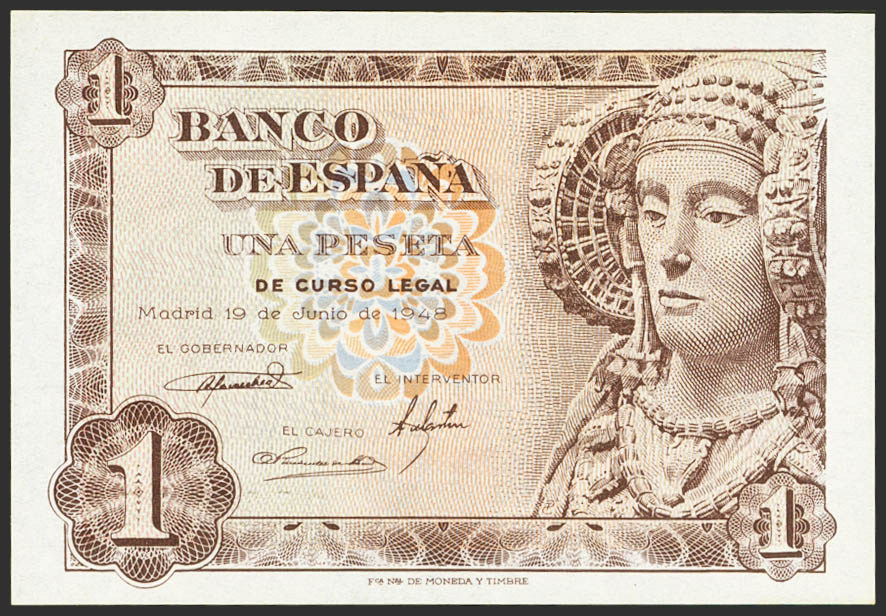 1 Peseta. 19 de Junio de 1948. Sin serie. (Edifil 2021: 457, Pick: 135a). Apresto original. SC.