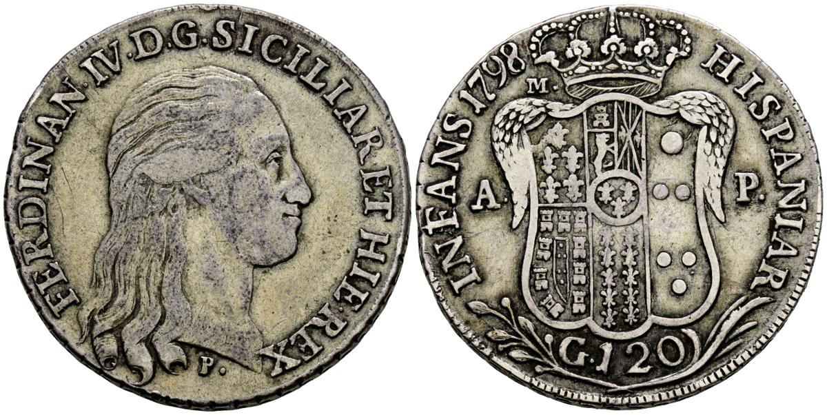 FERNANDO IV (1759-1799). 120 Grana. (Ar. 27,36g/40mm). 1798. Nápoles. (Vicenti 299). MBC. Escaso ejemplar.