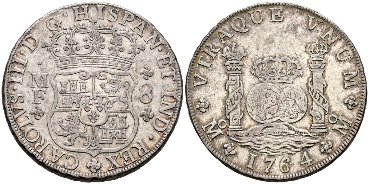 CARLOS III (1759-1788). 8 Reales (Ar. 26,84g/38mm). 1764. México MF. (Cal-2019-1087). MBC+. Pátina.