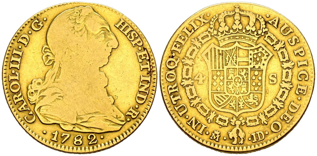 CARLOS III (1759-1788). 4 Escudos (Au. 13,19g/29mm). 1782. Madrid JD. (Cal-2019-1787). BC+/MBC-.